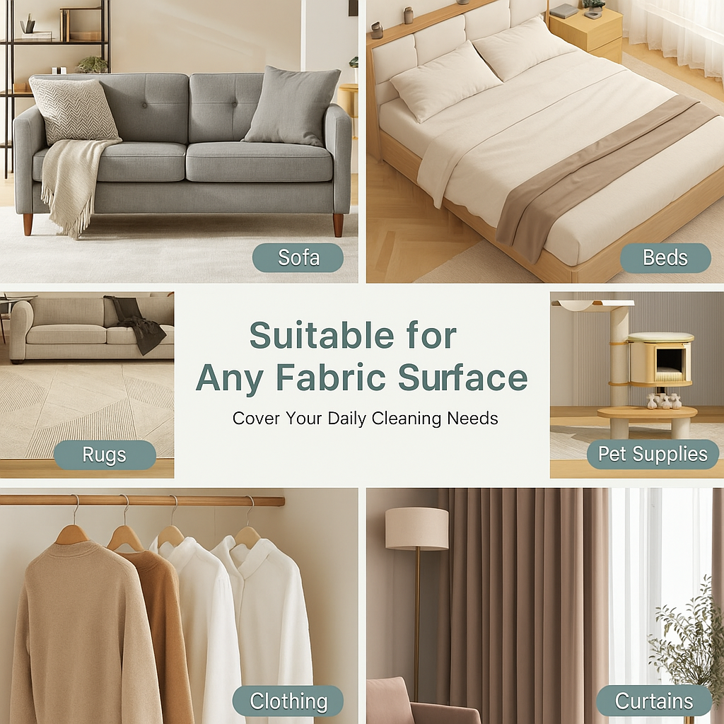 🛏️ Works on sofa, bed, clothes, carpets, and more.